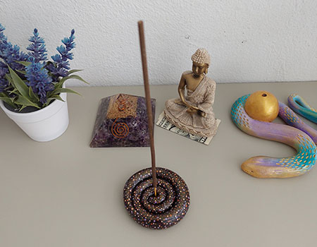 Portaincienso de cerámica en espiral, perfecta para conectar con las estrellas y el Universo.