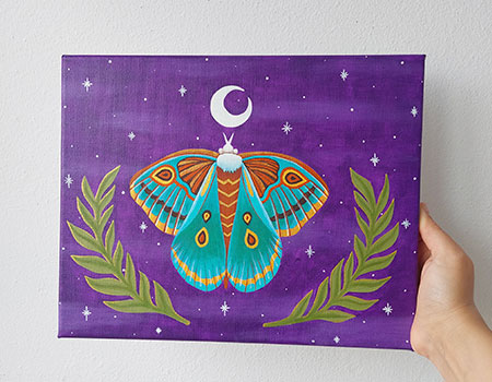 Cuadro basado en la belleza nocturna, pintado en acrílico con destellos dorados.