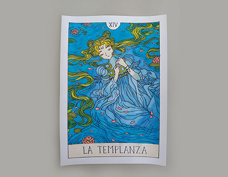 Dibujo basado en carta de tarot y sailor moon, pintado en marcadores en alcohol.